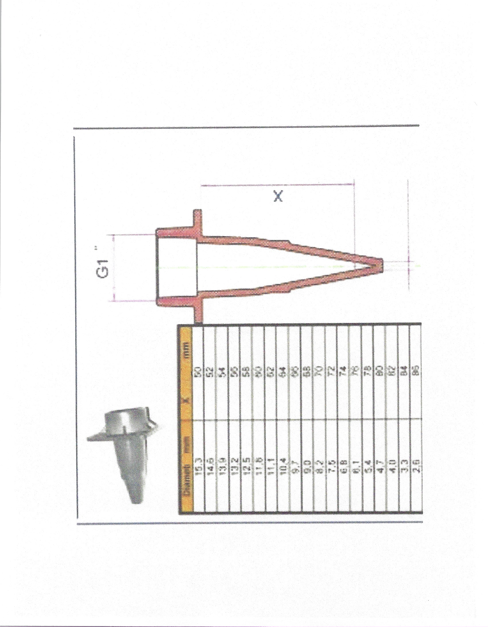 Fixed Cone Nozzle. Cut off the end of the cone to obtain the proper hole size. This is a low cost method to add additional nozzles. !20 mm long, requires a 32 mm hole in the box.